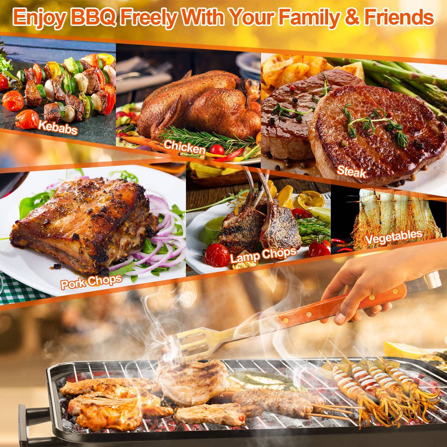 - *Various Applications*: This Portable barbecue charcoal grill is perfect for outdoor camping,backpacking,parties,beach cooking,etc. Get together with family and friends and enjoy the outdoor smoky cooking fun and taste the BBQ. And its shape fits perfectly in the back of most cars.